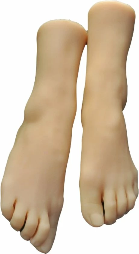 Kijk jij ook altijd stiekem naar voeten? Deze mooi gevormde voeten zijn het bekijken waard! De voet is gemaakt van 100% siliconen en voelt daardoor net echt aan. Alle tenen zijn los van elkaar beweegbaar, pas de voet aan je eigen wensen aan met de meegeleverde plak nagels en nagellak set. De voet ziet er heel natuurlijk uit door de plooitjes die aan de onderkant van de zool zijn aangebracht. De voet is 20 cm lang en 8 cm breed.