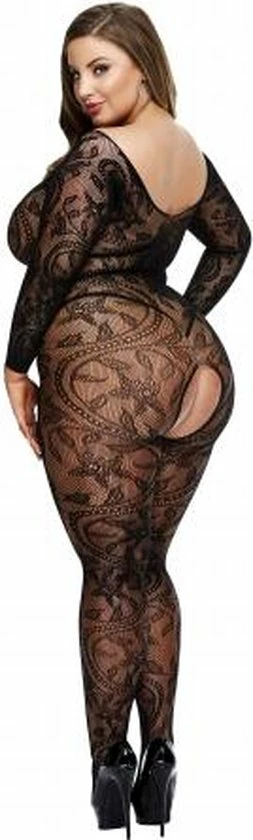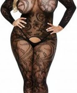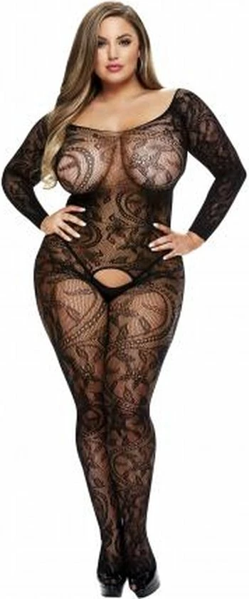 Baci Lingerie Baci – Kanten Jarretel Catsuit Met Lange Mouwen – Curvy