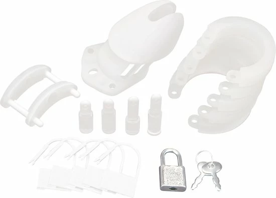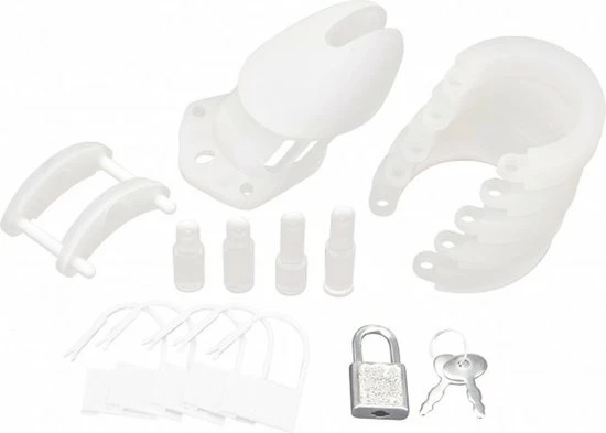 Een klassiek hangslot en twee sleutels zijn inbegrepen, bewaar minstens ??n van de sleutels op een zeer veilige plaats, aangezien het hangslot niet het type is dat u gemakkelijk kunt kiezen. Wat betreft dat luchthavenvriendelijke punt dat we in het begin hebben gemaakt, de siliconen kuisheidskooi wordt geleverd met zes plastic slottags die geen alarm zullen afgaan.