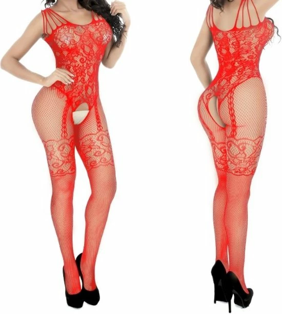 Body Pleasure Open Uitdagende Bodystocking – Luxe Cadeaubox – ROOD
