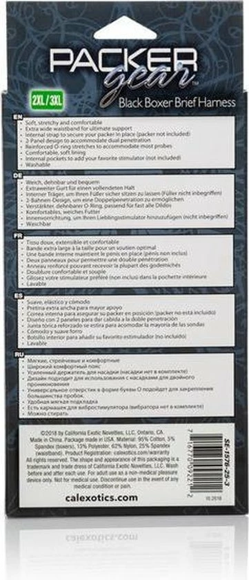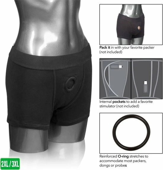 A soft, stretchy, functionally sexy garment from California Exotic’s Packer Gear collection, the Black Boxer Brief Harness was designed to secure and stabilize both soft packer pieces and firmer play devices, offering extremely well designed versatility, confident positioning and great looks, too.