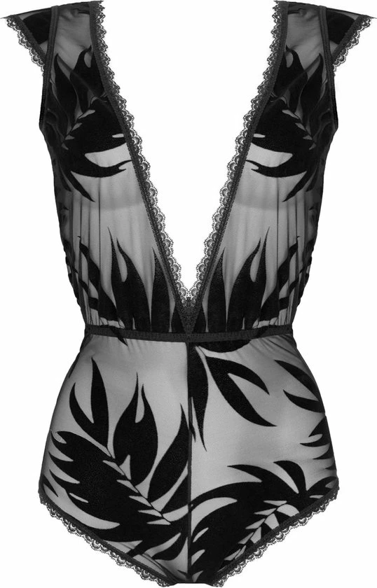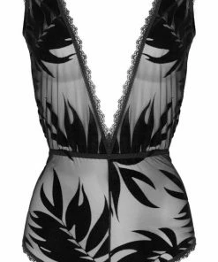 Merk: Christine le Duc. Mooie body of teddy gemaakt van zachte, fijne mesh dat bedrukt is met fluweelzachte blaadjes. Heerlijk zacht en sensueel. De teddy heeft een lossere pasvorm aan de bovenkant en sluit met een bandje aan de achterkant, de onderkant sluit goed aan. Eigentijdse, verleidelijke uitstraling.