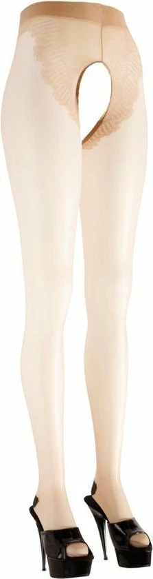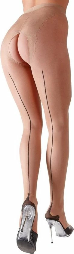 Naakt open kruis panty met een zwarte naad. Features mock slips boven en