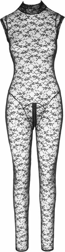 Cottelli Collection Sexy Kanten Catsuit Met Open Kruisje – Zwart