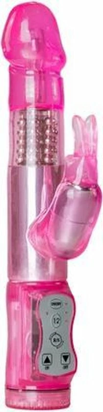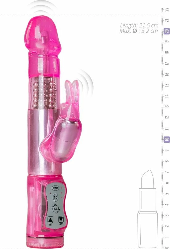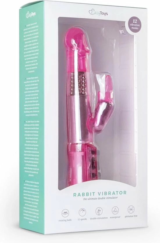 Deze roze rabbit vibrator van EasyToys laat jou dubbel zo veel genieten. Deze vibrator beschikt namelijk over zowel een clitoris als G-spot stimulatie! Het konijntje kietelt jouw clitoris terwijl de roterende kralen de binnenkant van de vagina masseren. Dit geeft een fantastische sensatie! Jij zult in een oogwenk tot een heerlijk hoogtepunt komen.Bekijk ook eens deze vibrator uit de EasyToys collectie in andere stijlen en kleuren!