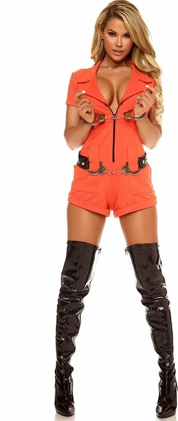 No one will mind spending 25 to Life with you when you’re suited up in our 2-piece Booked Sexy Women’s Inmate Costume. With cheeky romper and flirty handcuffs, you’ll have no problems finding a partner in crime this Halloween.
