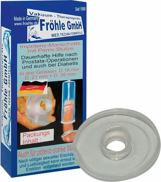 De producten van Fr?hle zijn gepatenteerd in de medische sector en staan daardoor hoog aangeschreven onder de liefhebbers. Deze penis sleeve is ontworpen voor gebruik na de penis vergroting via een penispomp van Fr?hle. In tegenstelling tot een penis ring, gaat deze sleeve pas na de erectie toestand om de penis. Zelfs wanneer de gebruiker last heeft van een erectiestoornis is dit medisch hulpmiddel effectief.