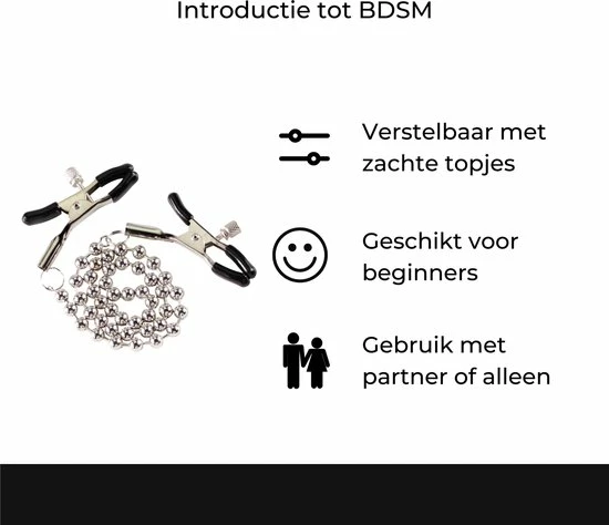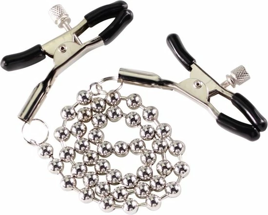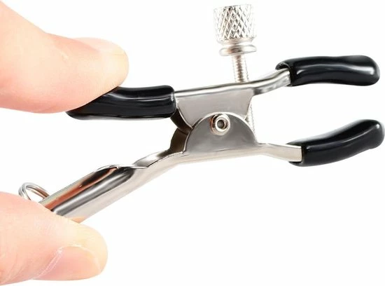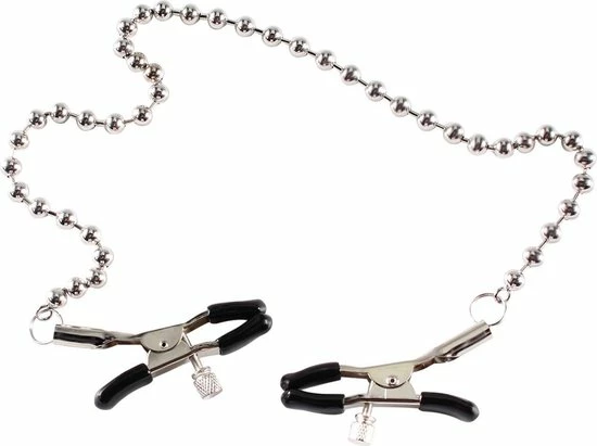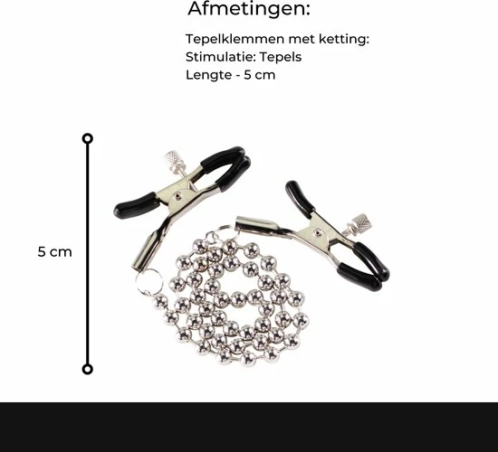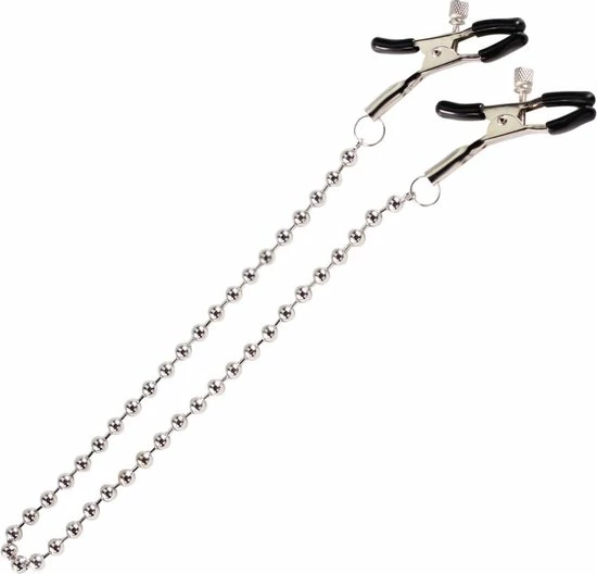 De metalen tepelklemmen die special zijn gemaakt voor ieder die opzoek is naar knelling in zijn of haar tepels. Deze sterke tepelklemmen geven je deze knelling op de tepels en zijn ook voorzien van een metalen ketting waarmee je kan spelen en de grenzen kan opzoeken van je partner. Voel hoe de klemmen stevig om je tepels zitten terwijl het koude metaal je lichaam raakt en prikkelt. Ben jij klaar voor deze stimulatie?