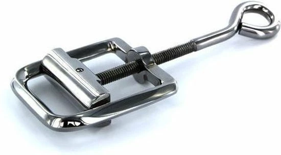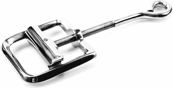 Hoogwaardige klem welke naar wens aan te draaien is. Als je van serieuze penisbondage houdt dan is dit je ding. Glanzend, groot en imposant, een balzakklem voor echte mannen. Deze schitterende klem heeft een totale lengte van 25 centimeter als deze volledig is uitgedraaid. De opening van de klem is 6,5 centimeter bij 6 centimeter, je kan hem zo strak draaien als je zelf wilt! Door de handige opening aan de schroef bestaat de mogelijkheid om hier gewichten aan te hangen. Hierdoor wordt de klem nog intenser. * Materiaal: gepolijst staal * Merk: Spartan Steel * Kleur: Zilver * Hoogte opening: 65 mm * Lengte: 25 cm * Breedte: 6 cm * Eenvoudig te reinigen