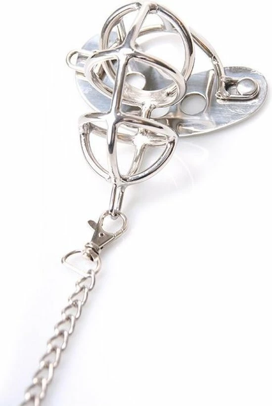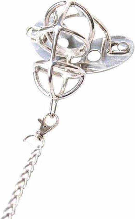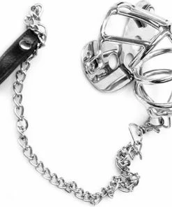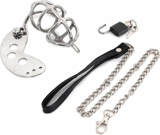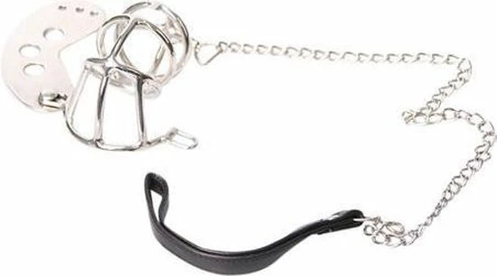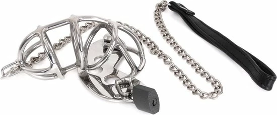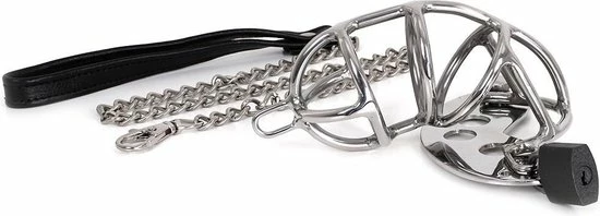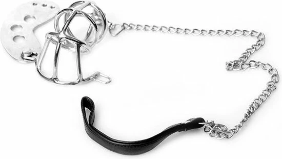 Deze ?open? peniskooi van het merk Kiotos, heeft een dusdanig slotsysteem dat ontsnappen onmogelijk maakt. Aan de kooi zit een handige metalen hondenriem bevestigd, zodat alleen jij bepaalt waar je met je onderdaan naar toe gaat.