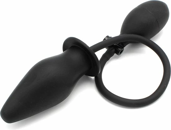 De zwarte opblaasbare anale plug heeft een glad oppervlak en is eenvoudig in te brengen. Gebruik na het inbrengen voorzichtig de handpomp om de plug op te blazen, of blaas hem op voor gebruik. Er zit een druk ontlastingsknop op de handpomp, de lucht verlaat de plug als je erop drukt.