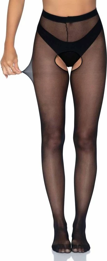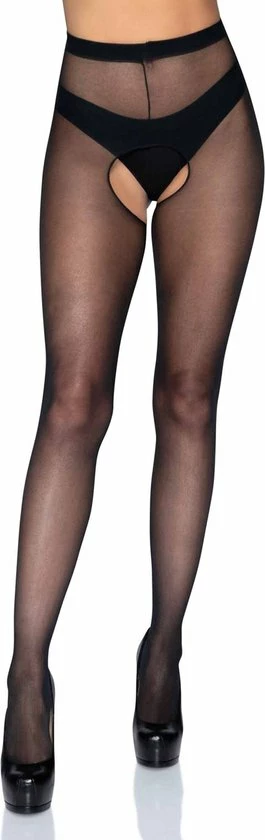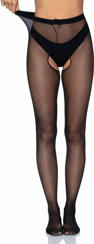 Transparante open kruis panty van nylon. De panty is transparant en heeft een dikte van 20 denier.