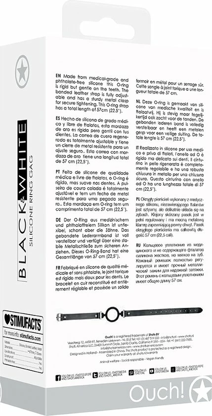 Deze fluweelzachte en volledig verstelbare siliconen O-ring knevel is perfect ontworpen voor comfortabel maar veilig aan banden leggen. Rek en open de lippen van uw onderdanige voor een verscheidenheid aan speelmogelijkheden met dit prachtig vervaardigde speelgoed! De O-ring is gemaakt van medische kwaliteit en ftalaatvrij siliconen en is stijf maar zacht voor de tanden. De lederen band is volledig verstelbaar en heeft een stevige metalen sluiting voor een veilige sluiting. Deze O-ring riem heeft een totale lengte van 57 cm (22.5). De binnendiameter van de flexibele siliconen ring is 4 cm (1,6).