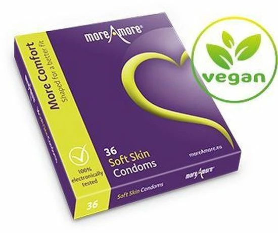 Geschikt voor vegetariers en veganisten. Er zijn geen dierlijke producten verwerkt in de Soft Skin condooms. MoreAmore producten en ingredi?nten worden niet getest op dieren.