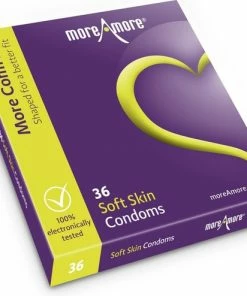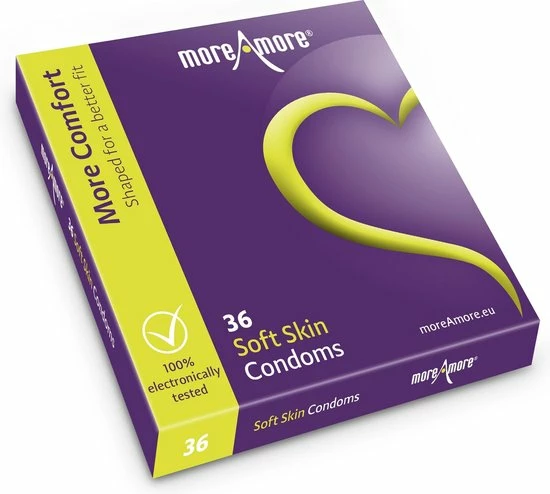 MoreAmore Soft Skin condooms zijn voorzien van extra glijmiddel. Dit zorgt voor meer comfort en helpt voorkomen dat het condoom scheurt bij gebruik. Extra glijmiddel zorgt voor meer plezier. Wanneer je meer glijmiddel wilt gebruiken, zorg dan dat dit altijd veilig te gebruiken is met latex condooms. Gebruik veilige glijmiddelen zoals de Skin Glyde en de Aqua Glyde.