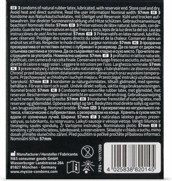 De condooms van het Duitse merk MySize worden gemaakt in diverse maten, zodat u altijd een perfect passend condoom kunt vinden. Het dragen van een goed passend condoom draagt niet alleen veel prettiger, maar verhoogt ook de veiligheid tijdens het gebruik.