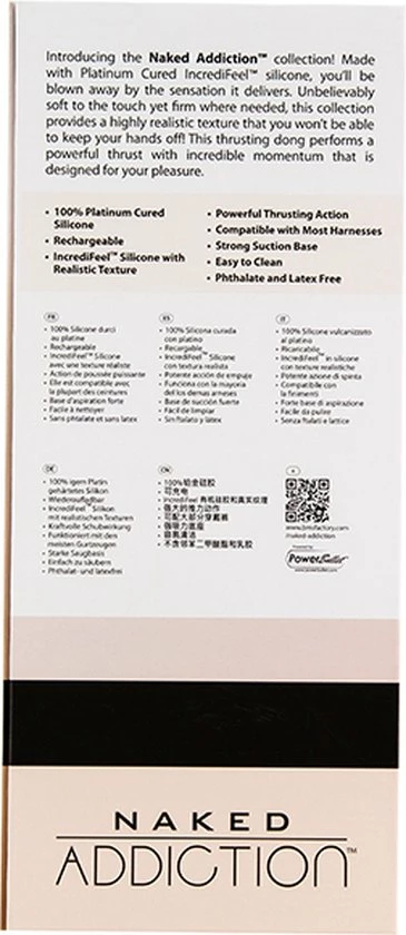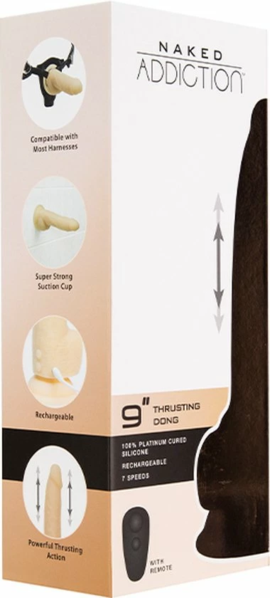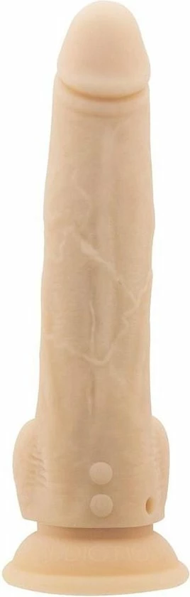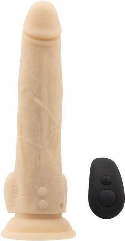Opwindende, realistische dildo met handige afstandsbediening uit de Naked Addiction Collection. Geniet solo of samen met je partner van een heerlijke stimulatie. De dildo maakt een op en neer gaande beweging en heeft 7 verschillende standen. Dankzij de harde kern beleef je een levensecht gevoel. Door de ronde eikel, geaderde schacht en ballen is deze dildo bijna niet van een echte penis te onderscheiden. De dildo is gemaakt van lichaamsveilig siliconen. Deze dildo is voorzien van een zuignap die op ieder glad oppervlakte blijft plakken. Zo kun je ook heerlijk handsfree genieten. Uiteraard kun je de dildo ook in combinatie met een harnas gebruiken. Je krijgt er een luxe toybag bij cadeau zodat je de dildo stofvrij kunt opbergen. Hij is weer snel oplaadbaar met de bijgeleverde USB-kabel. De afstandsbediening werkt op batterijen.