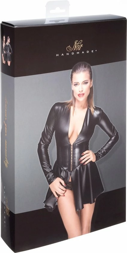 Noir Handmade Wetlook Mini Jurk Met Corset Lijfje – Medium