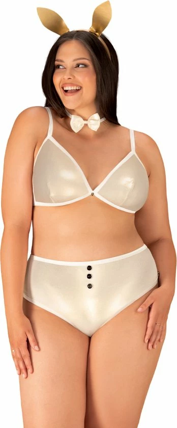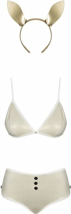 Today we will fulfill your fantasies with a charming accent. By jumping into the Neo Goldes costume, you?re guaranteed a phenomenal waistline and tempting golden bunny ears. In the mirror, you will admire how tempting the soft bra and sexy shorts look on you. Such a sweet costume combined with your sensual femininity will guarantee you a real ‘wow’ effect!