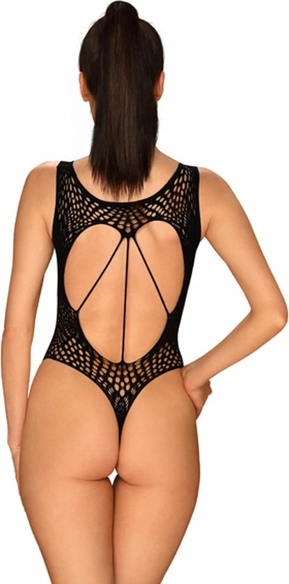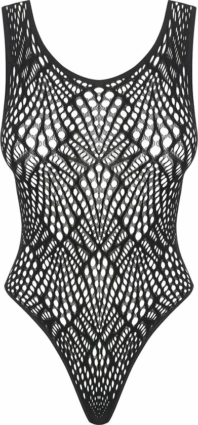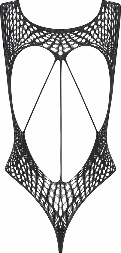 Deze mooie sexy stringbody met opengewerkt motief laat niets te raden over! De achterkant is een echte blikvanger. Het materiaal is elastisch voor een mooie pasvorm. De body heeft geen sluiting.