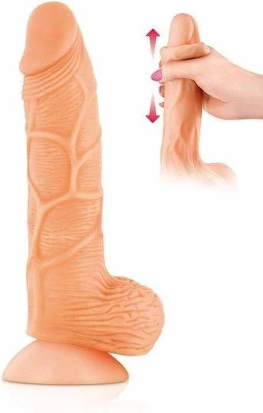 Een flexibel en uiterst zacht penis, een revolutionaire realisme met een heen en weer van de voorhuid, testikels flexibel bewegende ballen en een krachtige zuignap voor bevestiging op alle oppervlakken. Ftalaat vrij.
