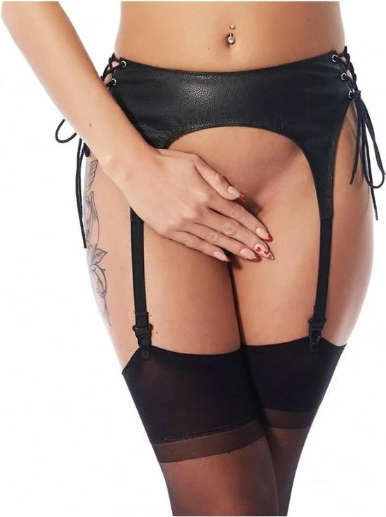 Echt nappa lederen jarretelles met 4 clips. Deze gordel is verstelbaar met veters aan twee zijden en is beschikbaar in maat SM en ML.