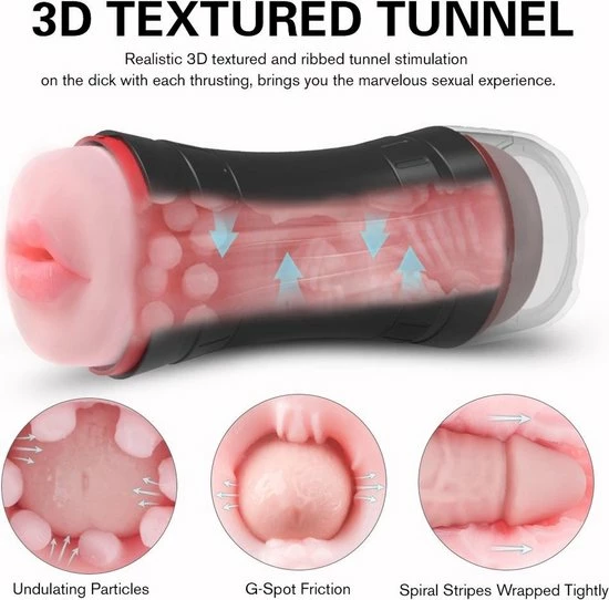 De tweezijdige stroker heeft aan de ene kant een gulzig mondje en aan de andere kant een realistische vagina. Duik in beide uiteinden en ervaar gevarieerde sensaties die je volledig laat genieten bij elke climax-opbouwende stoot.