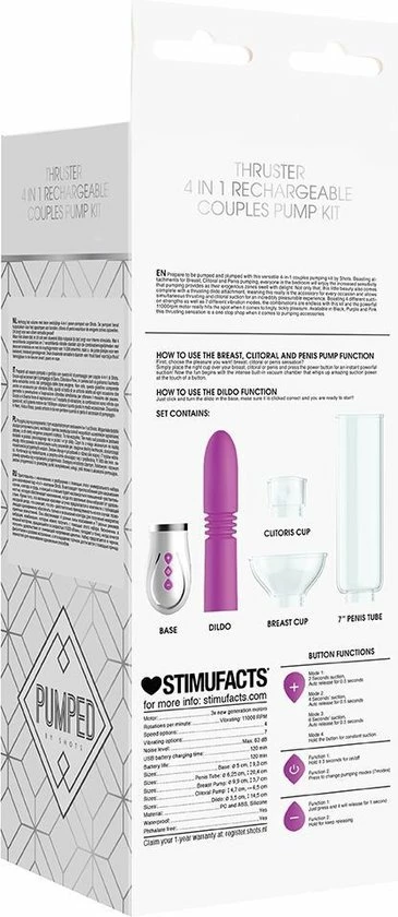 Shots – Pumped Thruster – 4 In 1 Rechargeable Couples Pump Kit – Purple