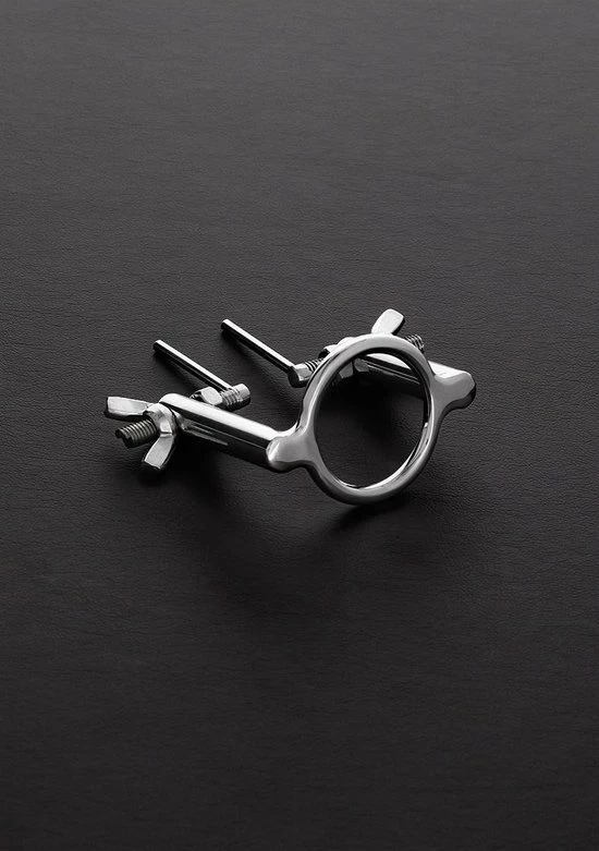 Deze urethrale stretcher is gemaakt van roestvrij staal en bestaat uit twee staven bevestigd aan een eikelring. De stretcher wordt net voorbij de hoofd van de penis geschoven en de twee staven worden in de urinebuis geplaatst. Gebruik daarna voorzichtig de twee vleuglegmoeren om de urethra te stretchen. Ideaal voor CGT of voor het strekken van de urethra in het algemeen, de Urethrale Stretcher zal u zeker de resultaten geven die u zoekt. Specifications- Length: 5 cm- Width: 4,3 cm- Inner diameter: 3,2 cm- Urethral Stretching: 2x 3,5 cm- Material: Stainless Steel