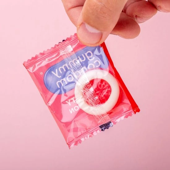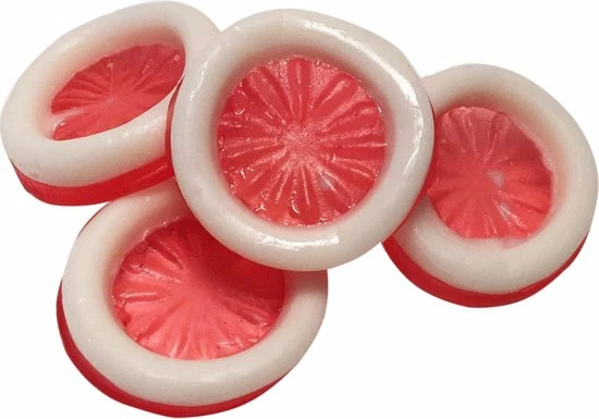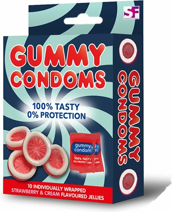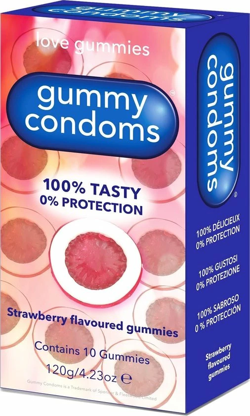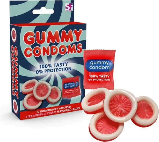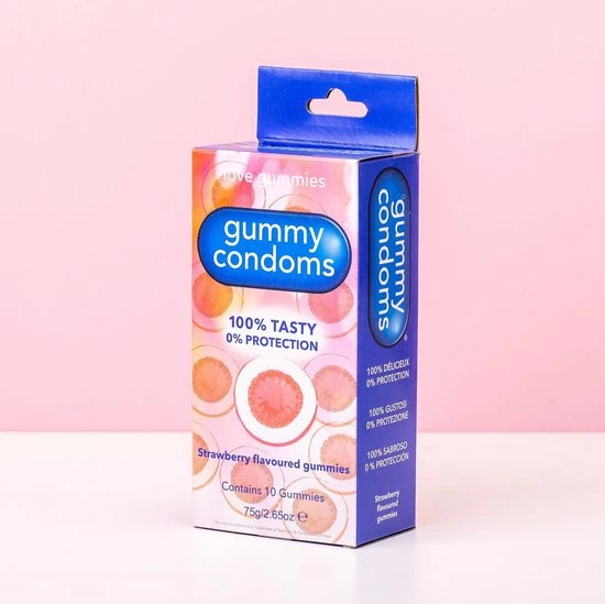 Delicious strawberry flavoured jelly condoms in individual wraps.