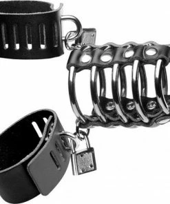 Deze metalen peniskooi is voorzien van leren bandjes met daaraan slotjes. Hierdoor kan de penis volledig worden opgesloten. De drager kan de kooi onder zijn gewone kleding omhouden en urineren door de open bovenkant. De leren bandjes zijn verstelbaar waardoor ze om elke penis en balzak passen. De kooi wordt geleverd inclusief 2 slotjes met sleutels.