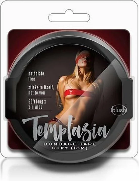 Leef je uit met deze sensuele en herbruikbare bondagetape! De tape plakt wel aan zichzelf maar niet aan huid of haren en is lichtgewicht. De tape is ideaal om een blinddoek mee te maken of een gag, of om je geliefde aan elk meubelstuk of oppervlak vast te maken, zonder het gedoe van touwen en zonder de nadelen van gewone tape.