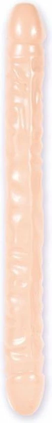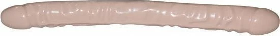 Dubbele flexibele dildo. Klaar voor een dubbele dosis plezier? Deze dubbele penis van Doc Johson heeft een kop aan beide kanten en een uitpuilende geaderde schacht voor spannende sensaties. De penis is geschikt om met jezelf te spelen maar ook lang genoeg om je partner te penetreren. Hierdoor zal je allebei tegelijkertijd genieten!Materiaal: latexvrij PVC Sil-A-GelWeekmakersvrij: jaKleur: beigeTotale lengte: 45 centimeter