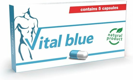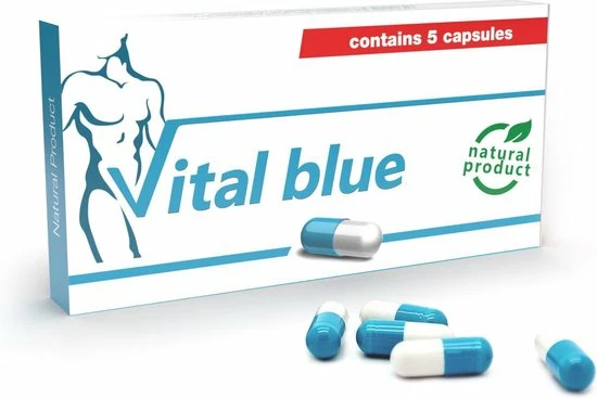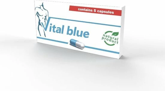 Vital Blue is een Natuurproduct dat zorgvuldig is samengesteld door jarenlange studies en het combineren van kruiden. De geconcentreerde formule van extracten zorgt voor een verbeterende sexuele prestatie, meer vitaliteit en een verbeterende functie van uw sexuele organen. Niet voor niets bestaat deze formule al tientallen jaren. Vital Blue is een Natuurproduct dat wordt aangeboden in een verpakking van vijf capsules in blauw/wit in een doordrukstrip verpakking.Vital Blue is de erectie capsule die werd geproduceerd als ??nmaal daags oplossing voor al uw seksuele behoeften.