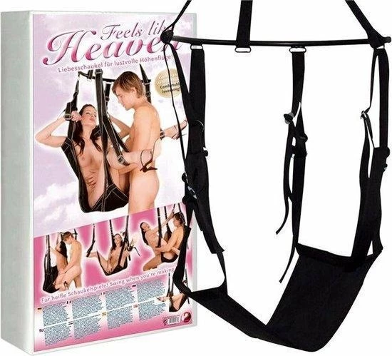 ​Deze Heavenly seksschommel is onwijs multifunctioneel en er is zo goed als alles mogelijk op het gebied van seks. In bed lijken bepaalde handelingen soms onmogelijk, maar in deze schommel is het een fluitje van een cent. Alle fantasieën kun je met deze schommel werkelijkheid maken en echt beleven. Leg je partner op zijn/haar rug in de schommel en beweeg alle kanten op. Je kunt alle kanten op met deze schommel. De seksschommel is aan het plafond te bevestigen met twee ogen. Het maximale gewicht is 120 kg.